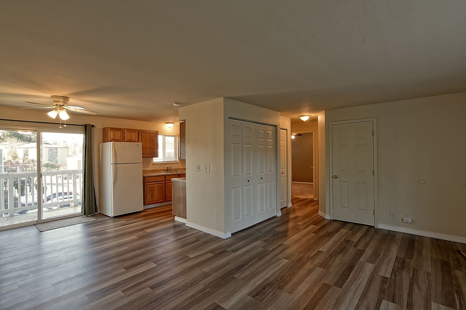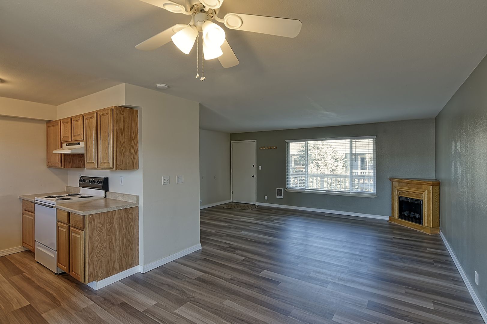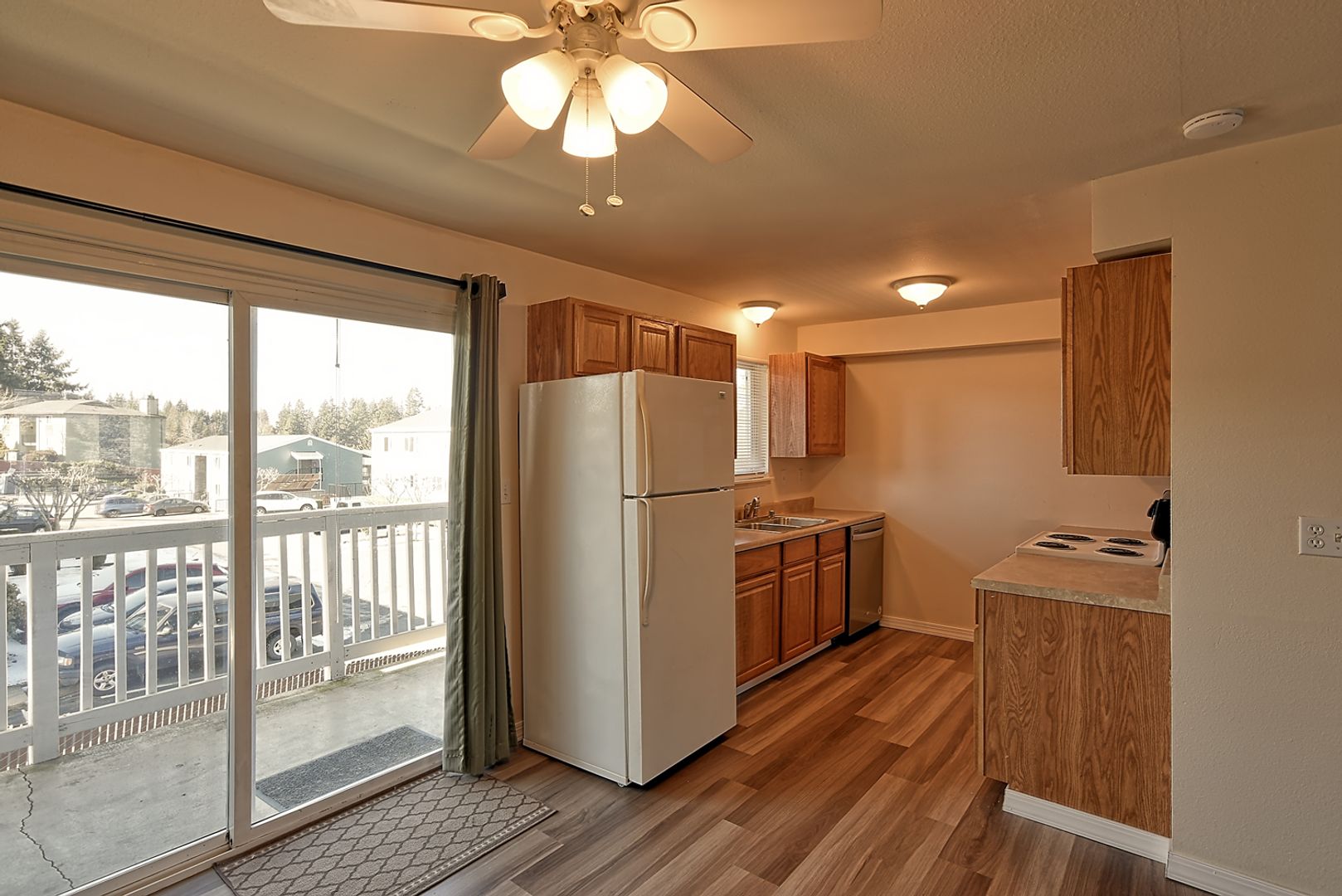 Lakeside Community Condo - Top floor, 2 bedroom condo now available! Natural light floods living and dining areas, while electric fireplace provides extra ambience and warmth. Galley-style kitchen provides ample storage and opens to roomy dining area with slider to large balcony. Bedrooms are generous in size. In-unit washer and dryer provided. Owner prefers no pets. Additional $150 monthly fee for water/sewer/garbage.